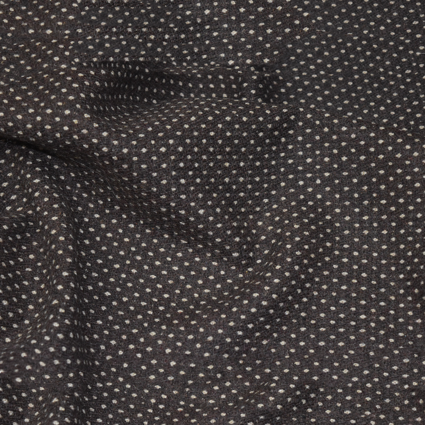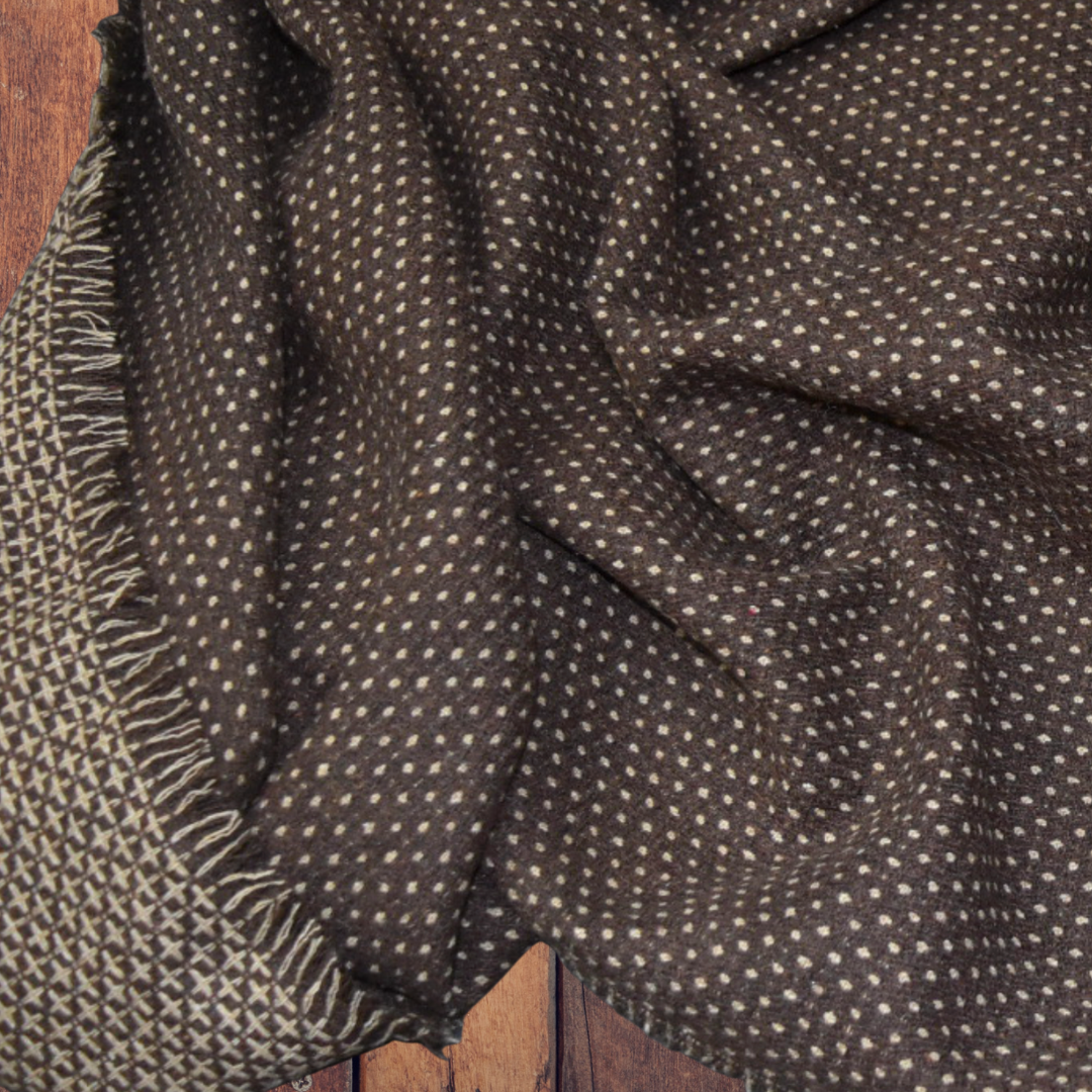 Step up your fashion game with this elegant rectangular scarf or wrap. Made from a lightweight woven woollen blend fabric, it boasts a sophisticated small dot pattern on rich chocolate, making it the perfect accessory to elevate any outfit.